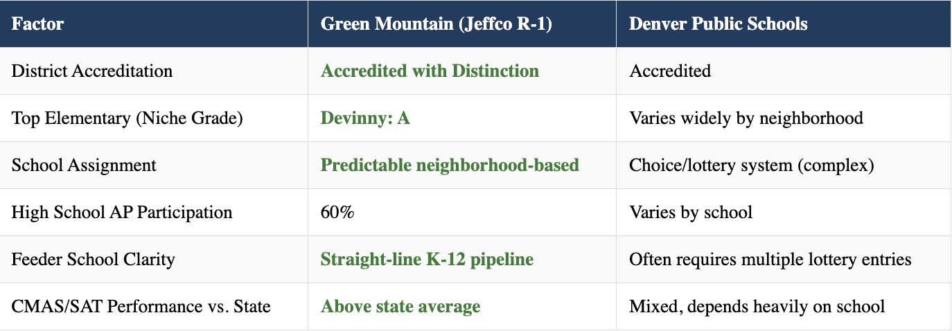 How Do Green Mountain Schools Compare to Denver Public Schools?
